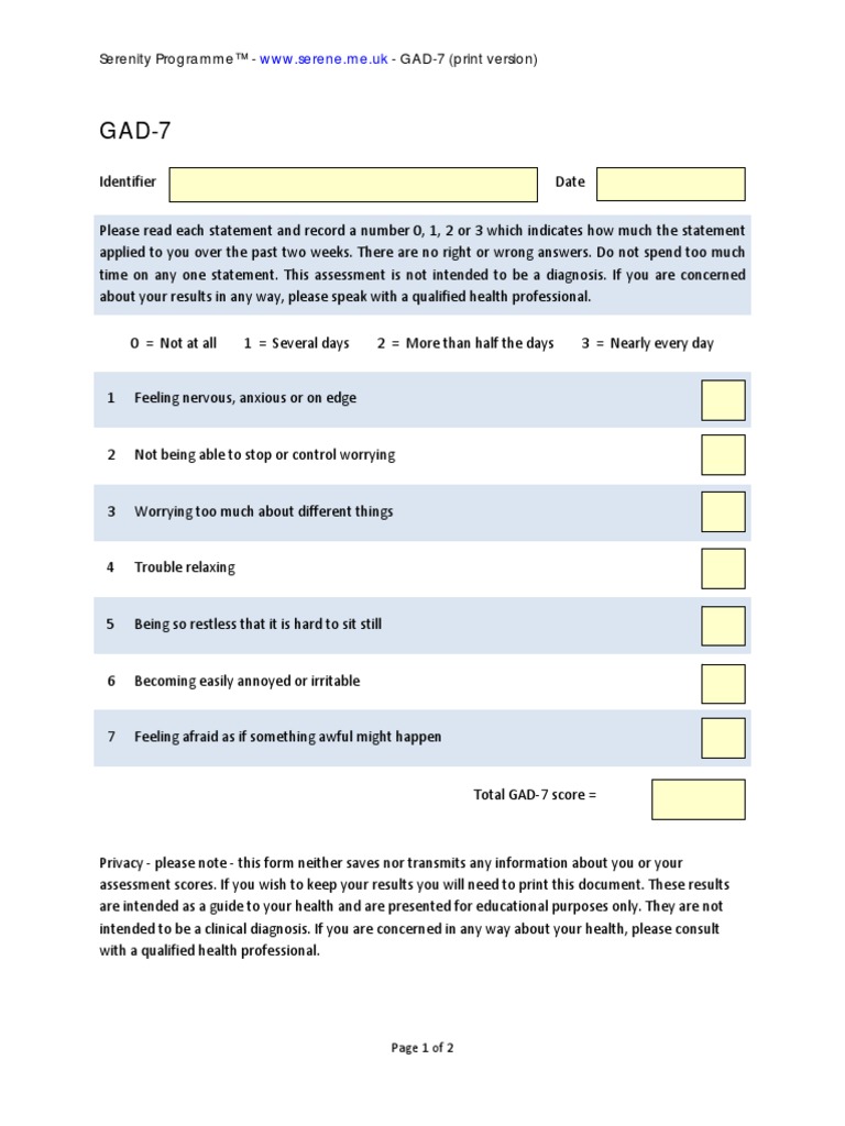 The items in the questionnaire assess the degree to which an individual has. In the text below the calculator you can discover more about the symptoms used. This is calculated by assigning scores. Fill gad 7, edit online. Generalized anxiety disorder (gad 7).